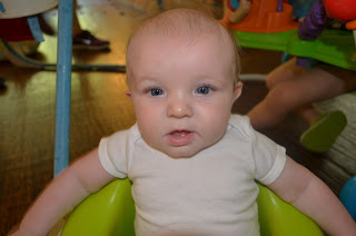 Mike and I finally had to move Coop to the Bumbo so the big boys could each have an Exersaucer...there is just something about the baby toys that are so alluring.