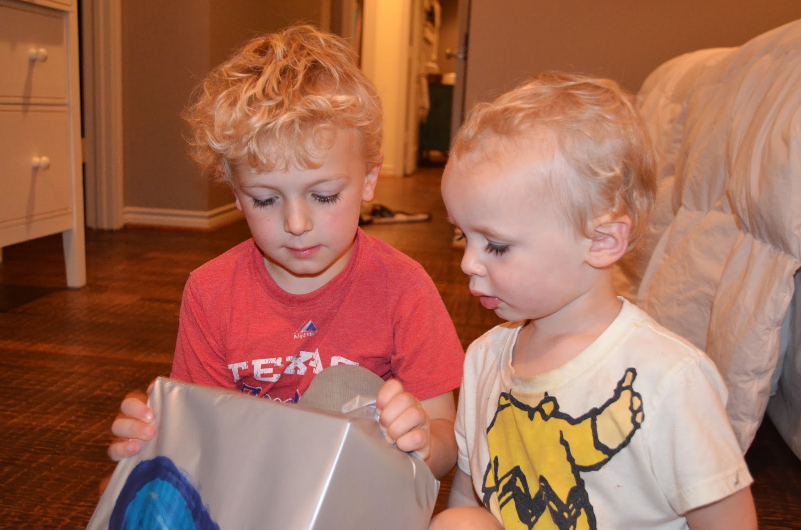 Last on our list was a scavenger hunt of 10 clues to find a special gift from mom and dad. Actually it appears we did this second to last as it was still daylight and in the above pic he is already holding said below present. Not changing it now.